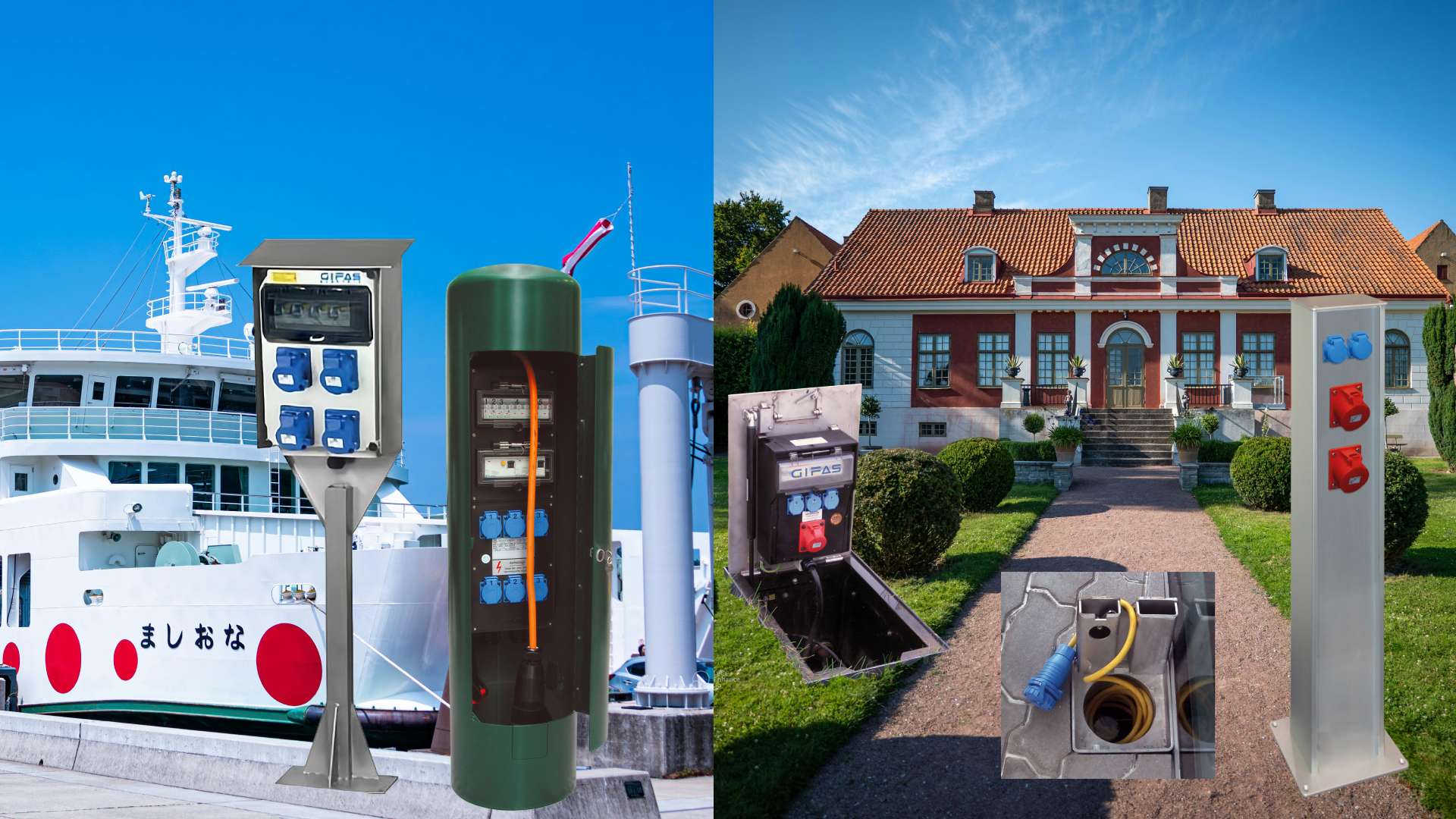| Complete solutions for hospitals and medical facilities. (e.g., Rexuma panels). | Power columns and underfloor distribution systems for industry and outdoor areas (e.g., GIFAS Electric) |